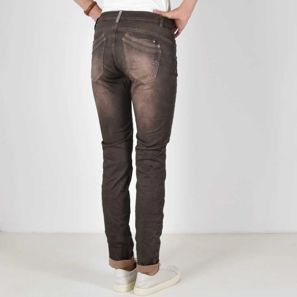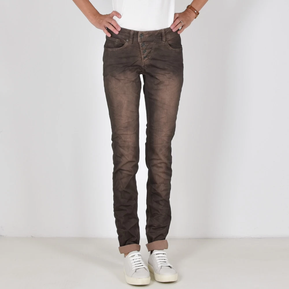 -Mid Waist Twill Hose mit schräger Knopleiste in leicht verwaschener geprinteter Optik