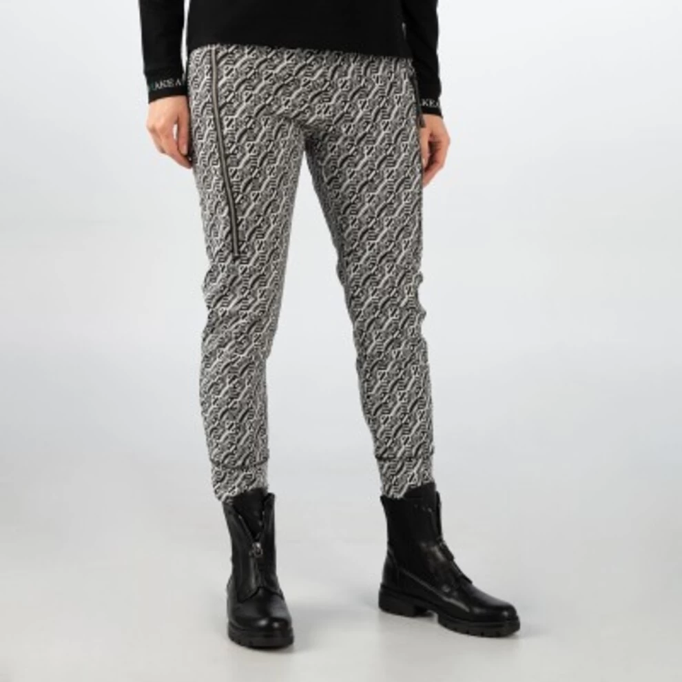 Mac-Hosen Elastischer Bund mit Hohlsaum und Kordelzug Seitentaschen auf der Vorderseite mit Reißverschluss Hoher Stretchanteil Durchgehend kariertes Design Fließende Passform