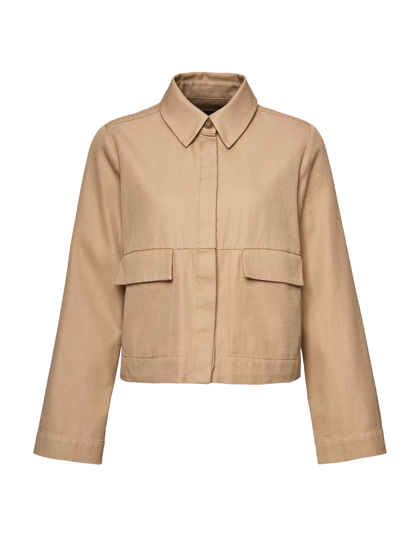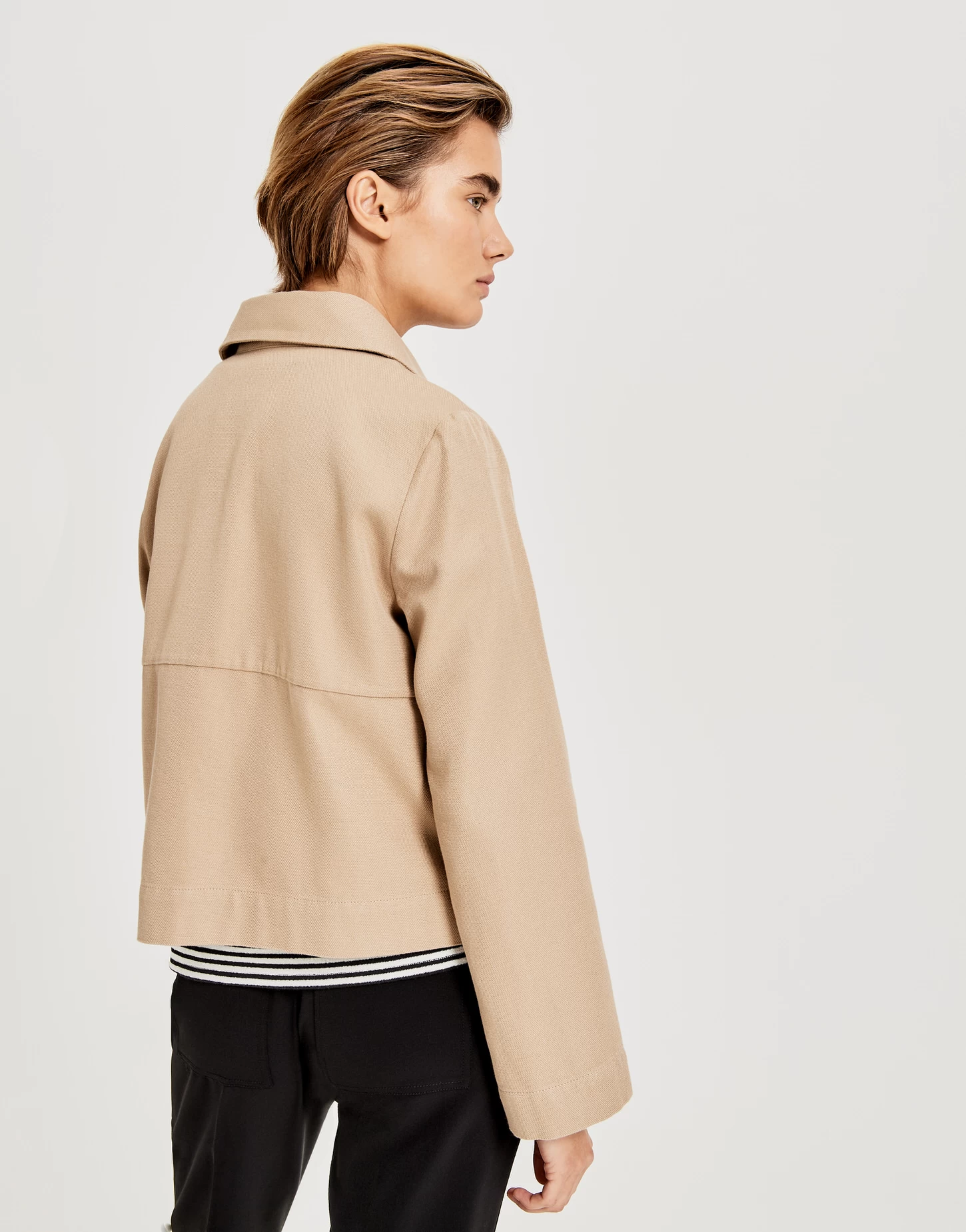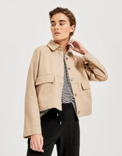 Hochwertige Baumwoll-Qualität, große, aufgesetzte Taschen, weite Passform, Hornknöpfe, das Model ist 177 cm groß und trägt Größe 36