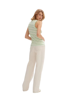 Das Tanktop aus einem BCI Cotton Mix spielt ein schönes Streifen-Muster über eine modische Rippe. Der breite Träger und der große Armausschnitt sind charakteristisch für das sportive Top.