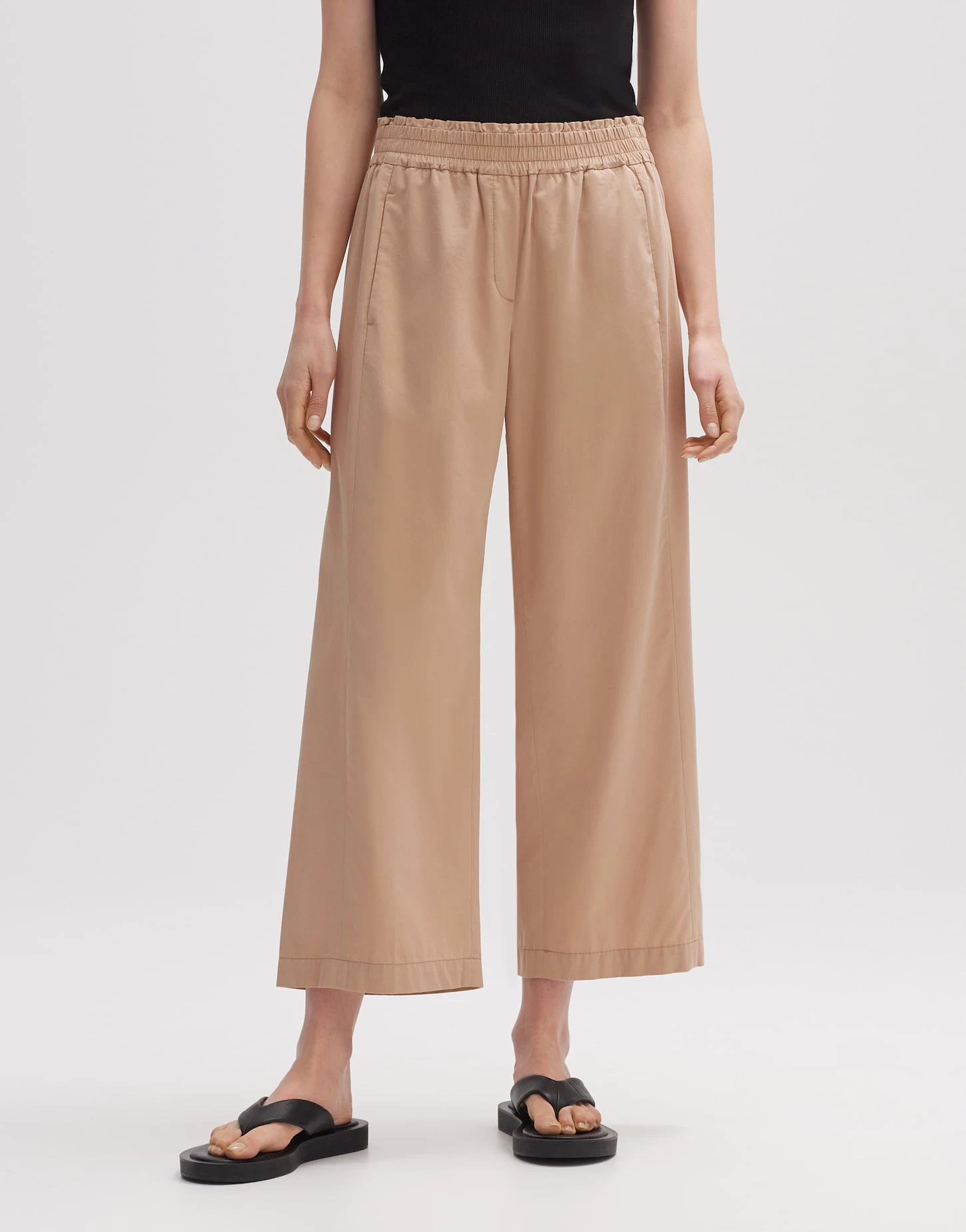 Die sommerliche Culotte aus einem nachhaltigem BCI Cotton-Mix mit einem doppelt abgesteppten Schlupfbündchen macht das Tragegefühl sehr komfortabel und easy. Die vorverlegten Seitennähte strecken das Bein optisch.