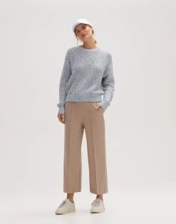 Der Strickpullover aus einem Baumwoll-Mix setzt auf einen dynamischen Look, der durch das zweifarbige Garn entsteht. Der breit gerippte Saum am Bündchen und an den Ärmeln erhält durch den Richtungswechsel der Strickmasche einen optischen Bruch.