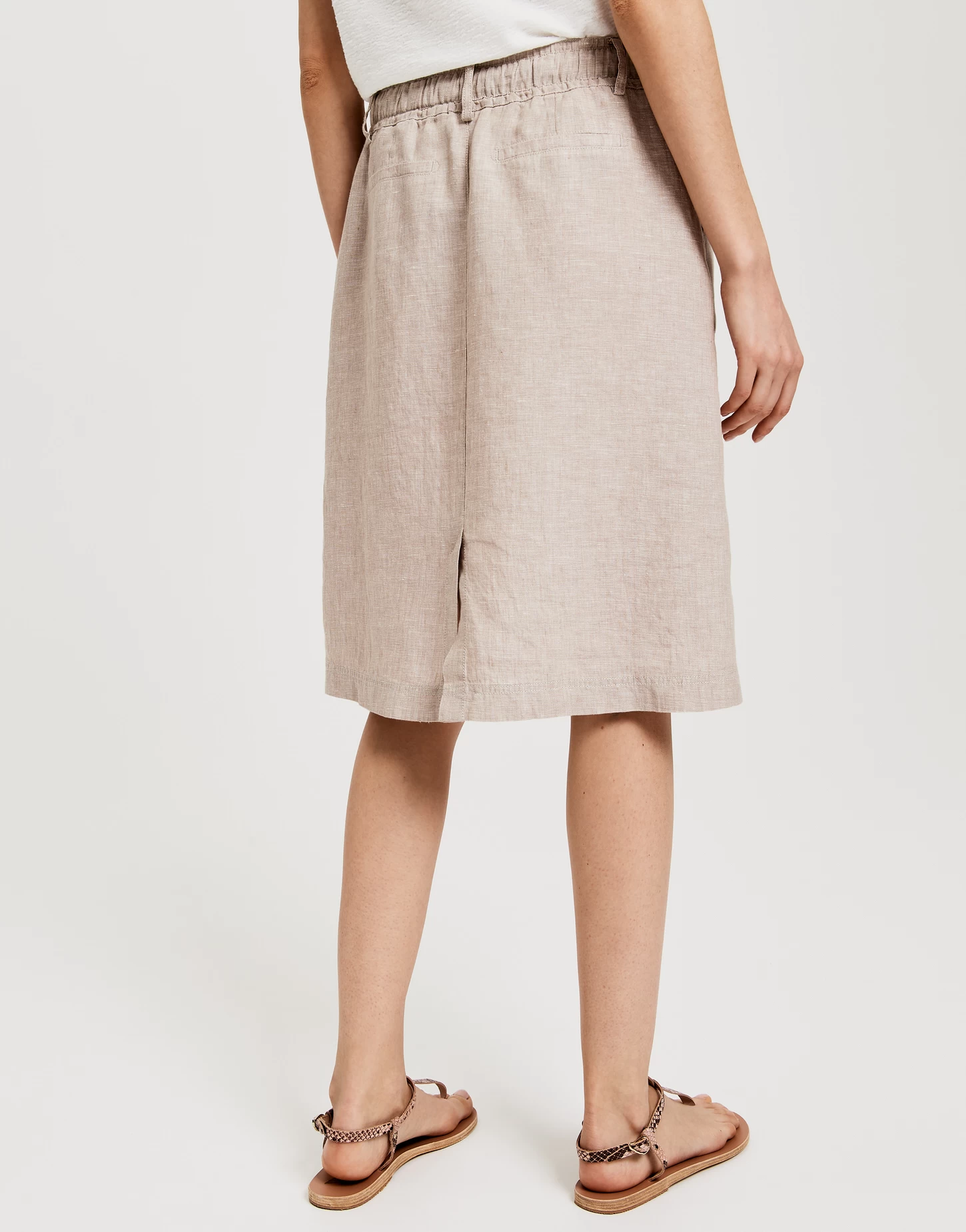 hochwertige Leinen-Qualität, aufgesetzte Taschen vorne, Kordel-Detail am Bund, eingesetzter Gummibund am Saum, Paspeltaschen hinten