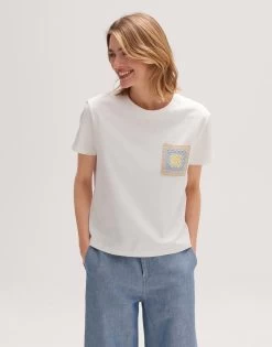 Das T-Shirt aus einem nachhaltigen Material-Mix überzeugt mit einem raffinierten Detail: Auf der Front ist eine bunte Häkeltasche aufgesetzt und versprüht einen tollen Hippie Vibe. Die Passform ist schlicht und entspannt gehalten.