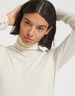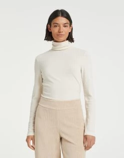 Das Rollkragenshirt aus einem ECOVERO™ Viskose Mix besticht durch eine Rippstruktur mit feinem Streifen-Effekt. Die Oberfläche ist subtil und spannend zugleich. Die schmale Passform macht das Shirt zu einem perfekten Unterzieher.