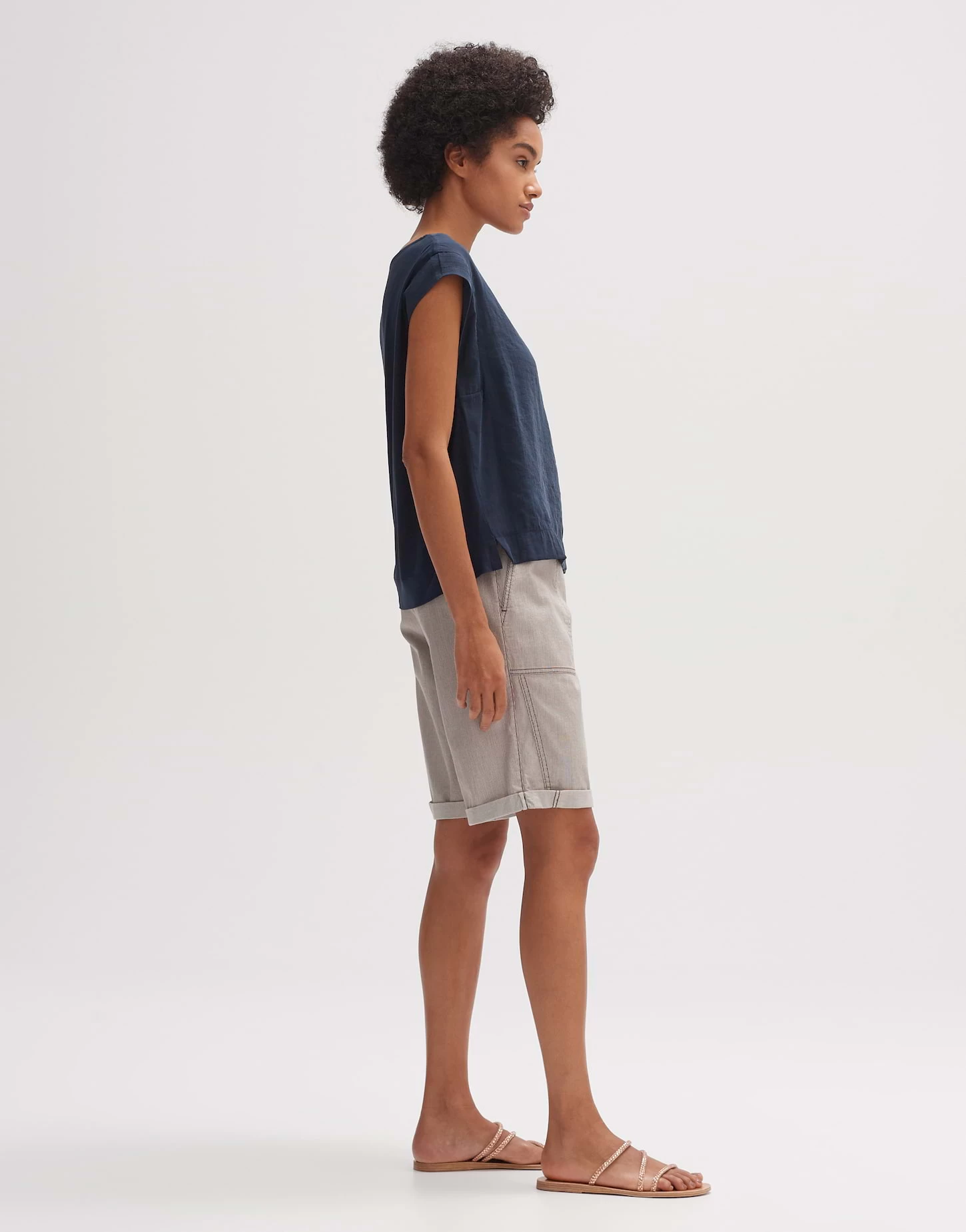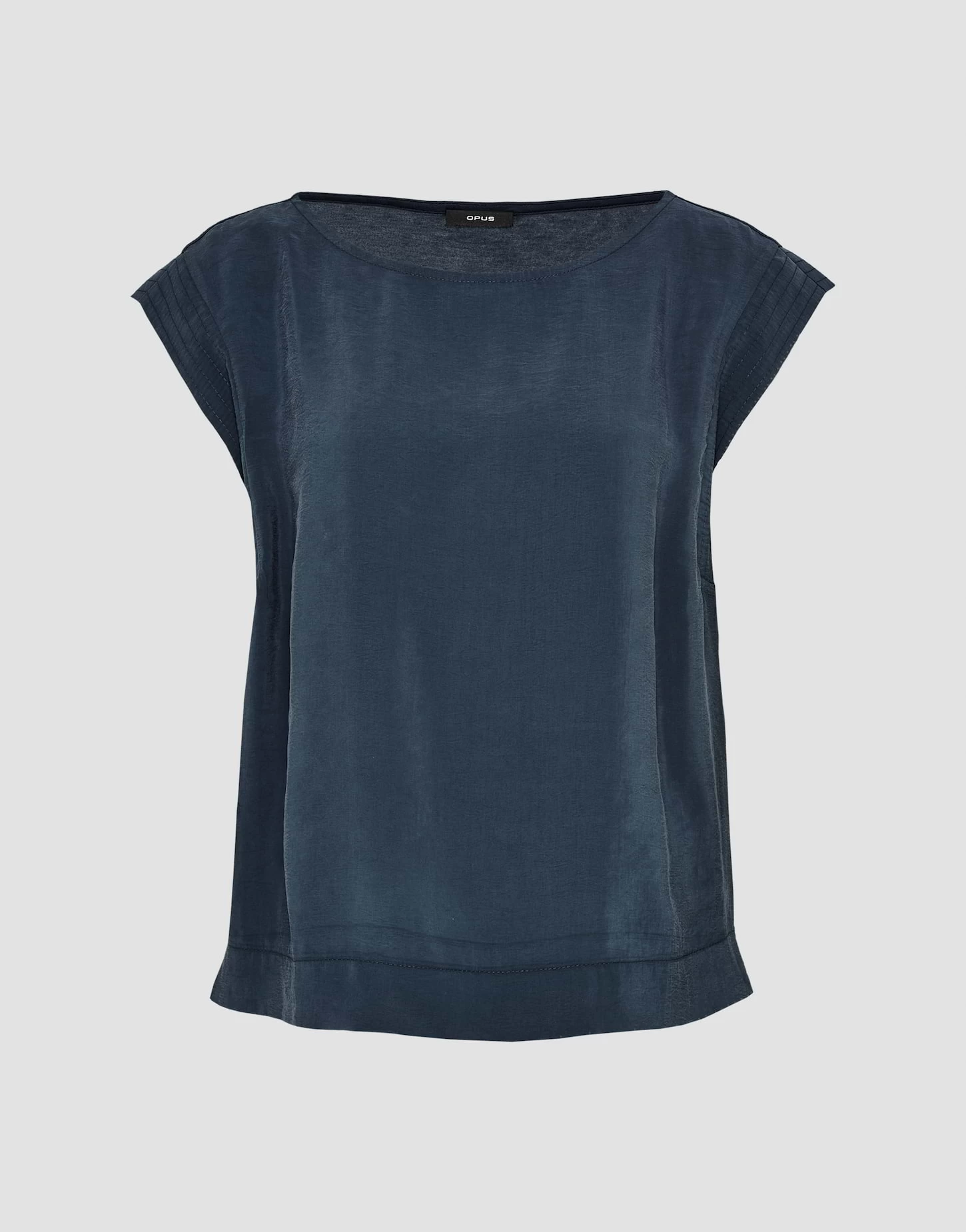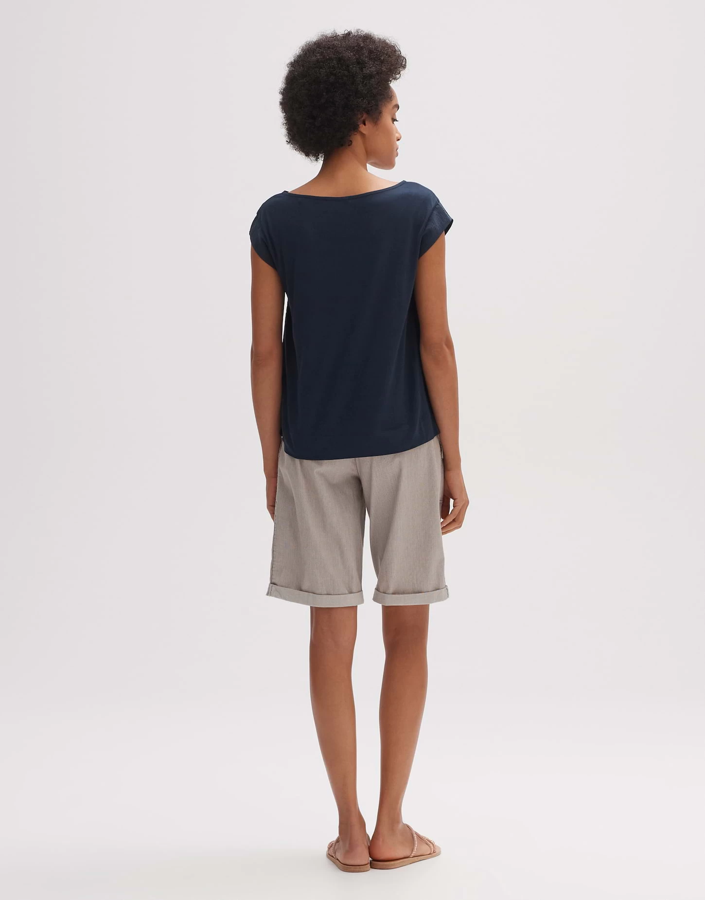 Das Shirt aus einem Material-Mix verfügt über eine Front mit einem samtig weichen Griff und einem Rücken aus fließender Viskose. Ein schönes Detail sind die mehrfach gesetzten Nähte am Armausschnitt.