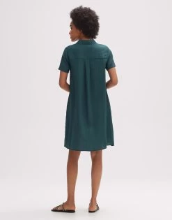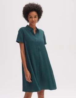 Das Hemdblusenkleid aus einem ECOVERO™ Viskose Mix spielt mit klassischen Details und einer leichten Oberflächenstruktur. Die Form ist in femininer A-Linie gehalten und der Ärmel wird lässig umgeschlagen.
