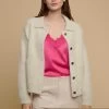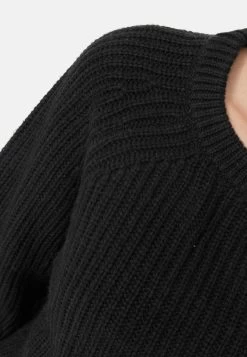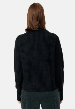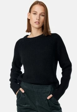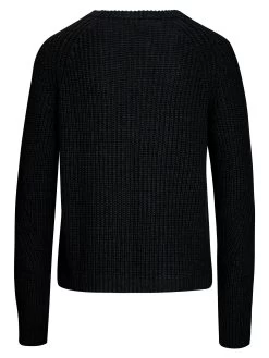 Gestrickter Pullover mit Raglanärmel und Rundhalsausschnitt. Der Korpus ist mit einem Strickmuster versehen.