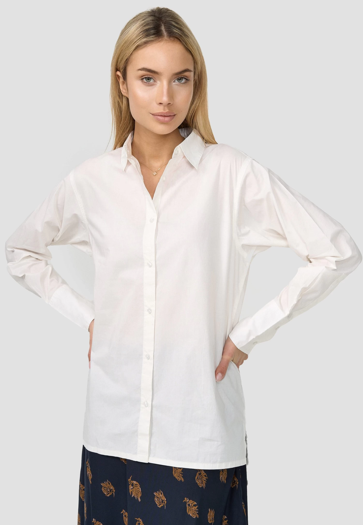 gerade geschnittene Langarm Bluse mit Kragen, Knopfleiste und RĂĽckenpasse