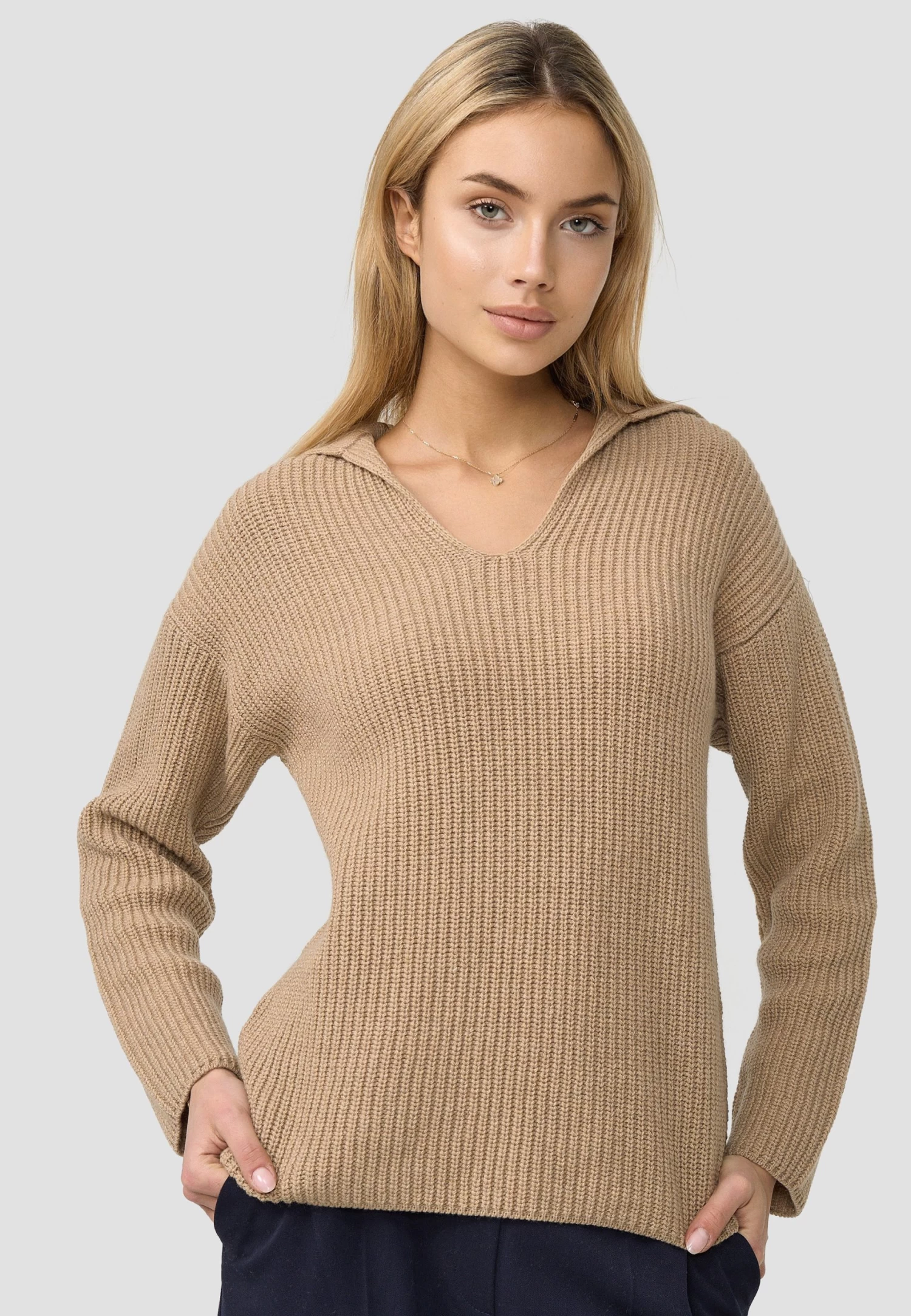 Pullover mit V-Ausschnitt und Kragen