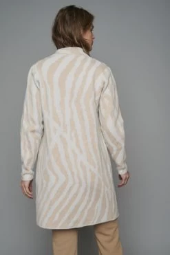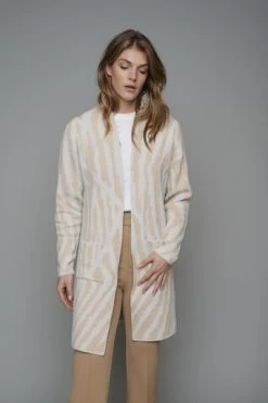 Soft knitted cardigan. This open mid-length cardigan features a structured zebra print and two front slip pockets. This essential piece is easy to combine for a everyday look.Â