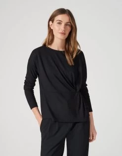 Das Shirt begeistert mit seinem Knotendetail vorne rechts. Durch den nachhaltigen ECOVERO™ Viskose-Mix entsteht ein super softer Griff und ein angenehmes Tragegefühl. Die gerade Silhouette und die leicht schimmernde Ware sorgen für einen bequemen und modern anmutenden Look.
