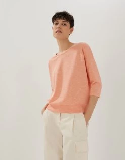 Das Shirt aus einer neuen Strukturware aus einem Viskose-Mix erzeugt durch die Zweifarbigkeit einen schönen Mouliné-Effekt. Die Form ist entspannt gehalten und mit weiten Fledermaus-Ärmeln versehen.
