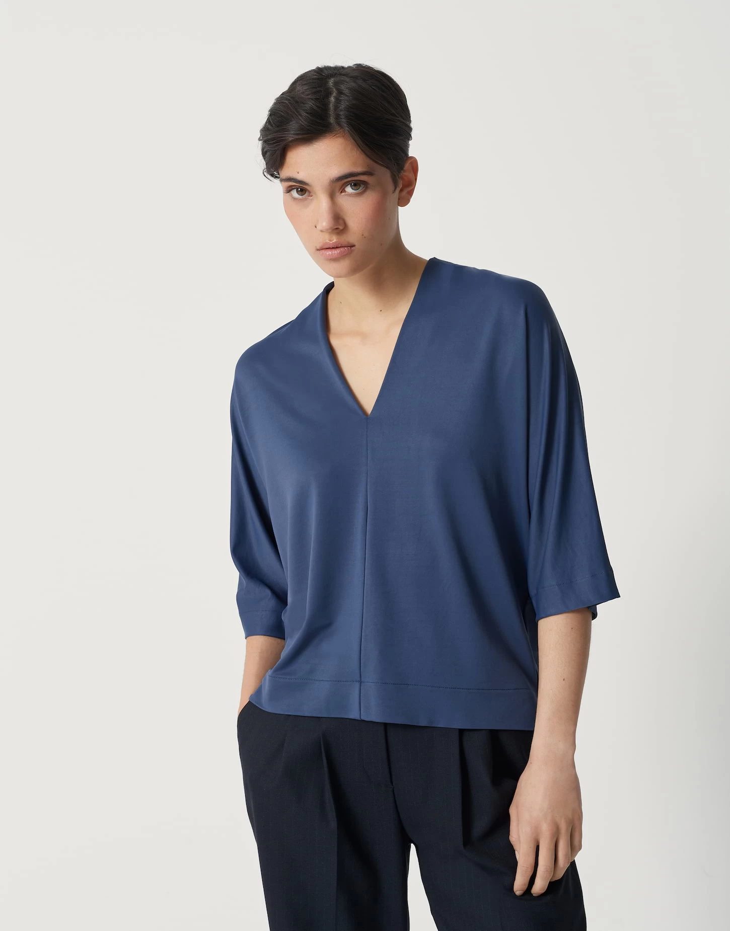 Das Shirt aus einer innovativen Ware überzeugt mit vielen, tollen Eigenschaften wie Atmungsaktivität. Die moderne O-Shape ist mit weit fallenden Ärmeln und einem tiefen V-Neck versehen.