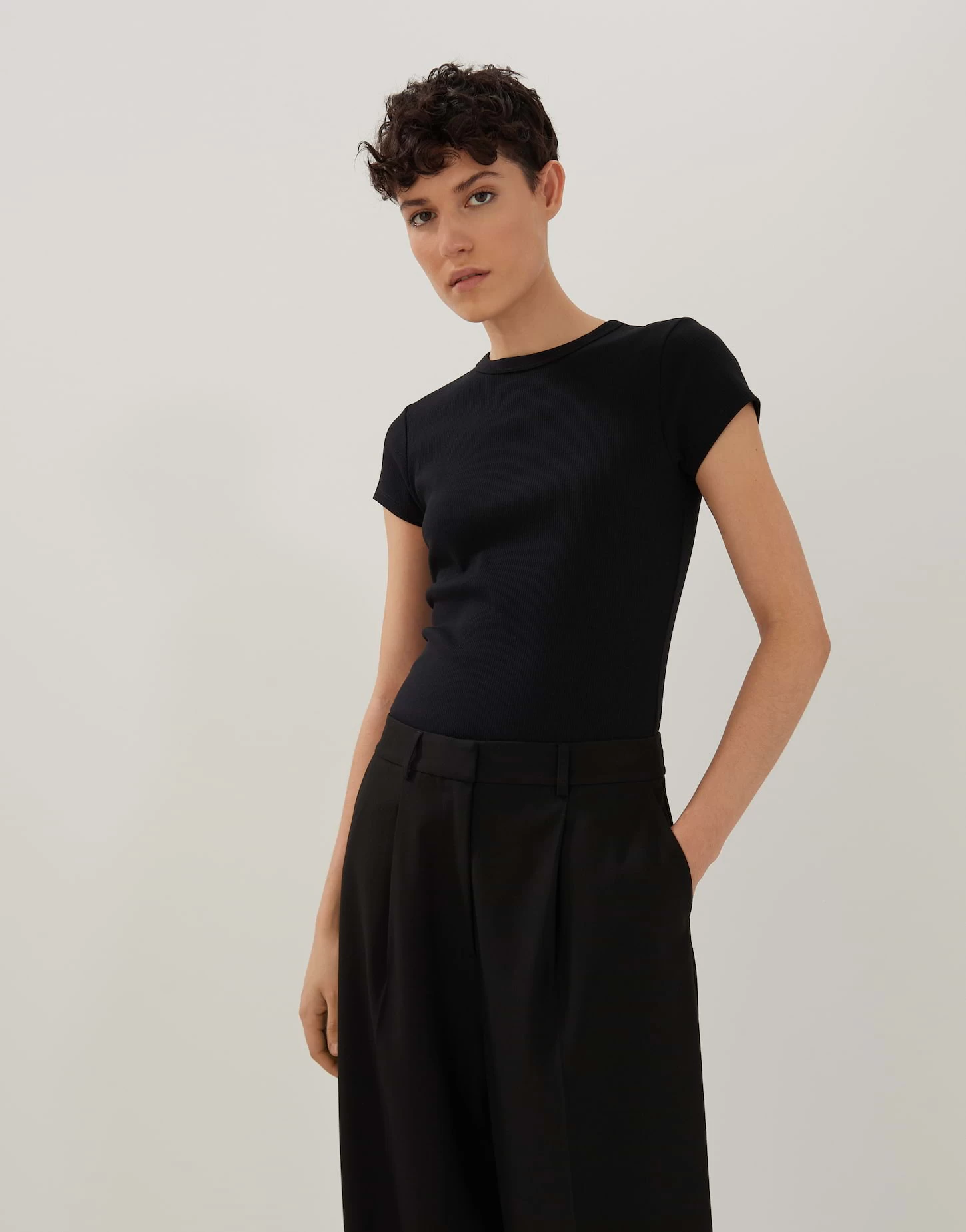 Das Shirt aus einem BCI Cotton Mix ĂĽberzeugt mit schlichtem Look und feiner Rippe. Die figurbetonte Form sorgt fĂĽr einen femininen Look.