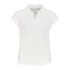 Das Shirt aus einem BCI Cotton Mix überzeugt mit einer dreidimensionalen Oberflächenstruktur, die eine gewisse Strickanmutung entstehen lässt. Der Stehkragen läuft über in einen tiefen V-Ausschnitt und schließlich in eine lange Naht auf der Front.
