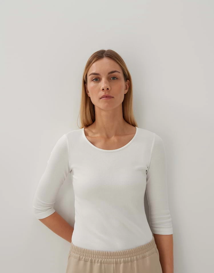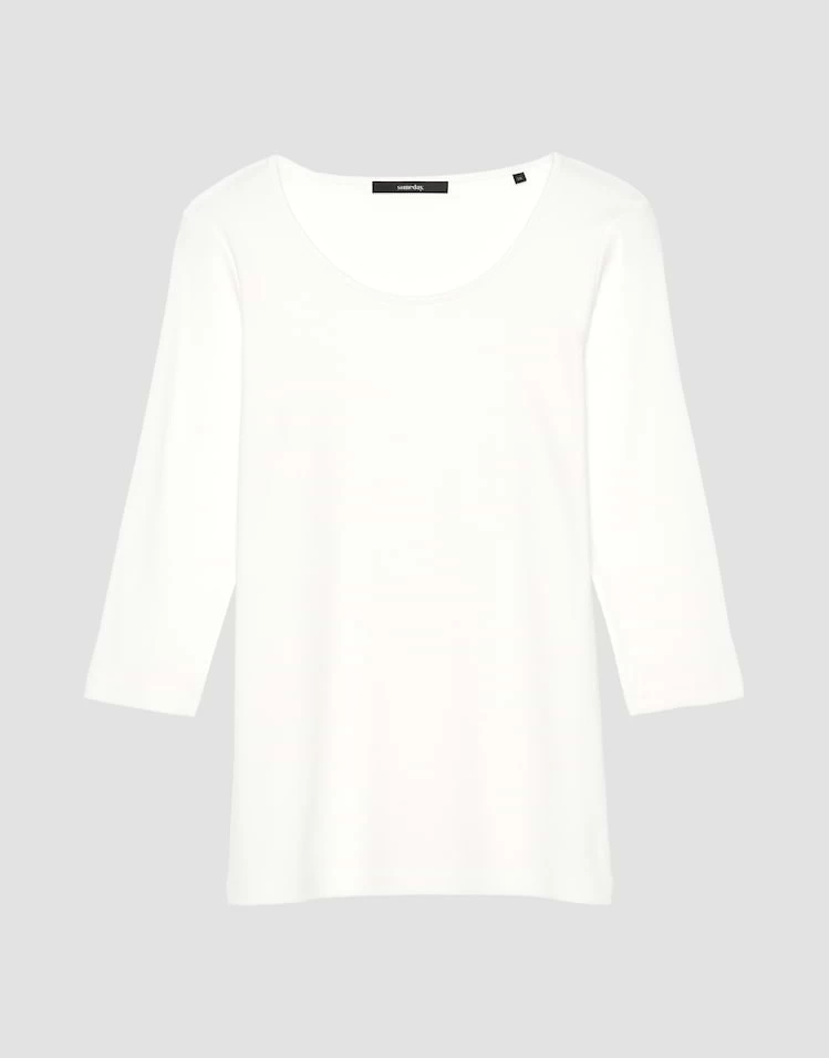 Das Basicshirt aus einem Modal-Mix ist super soft und schmiegt sich durch die schmale Silhouette toll an den Körper an. Die feine Rippe sorgt für einen edlen Look. Der Arm ist verkürzt und der Rundhalsausschnitt weit gehalten.