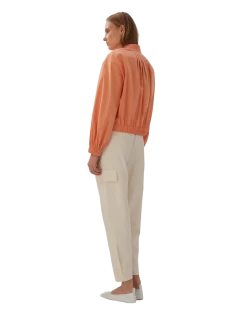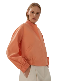 Die Bomberjacke aus Recycled Polyester bricht mit dem edlen Schimmer die sonst so sportive Optik. Klassisch fĂĽr die Bomberjacke sind die RippbĂĽndchen und der gerippte Saum, ĂĽber den die weite Form betont wird. Besonderer Clou: die Jacke ist wasserabweisend.