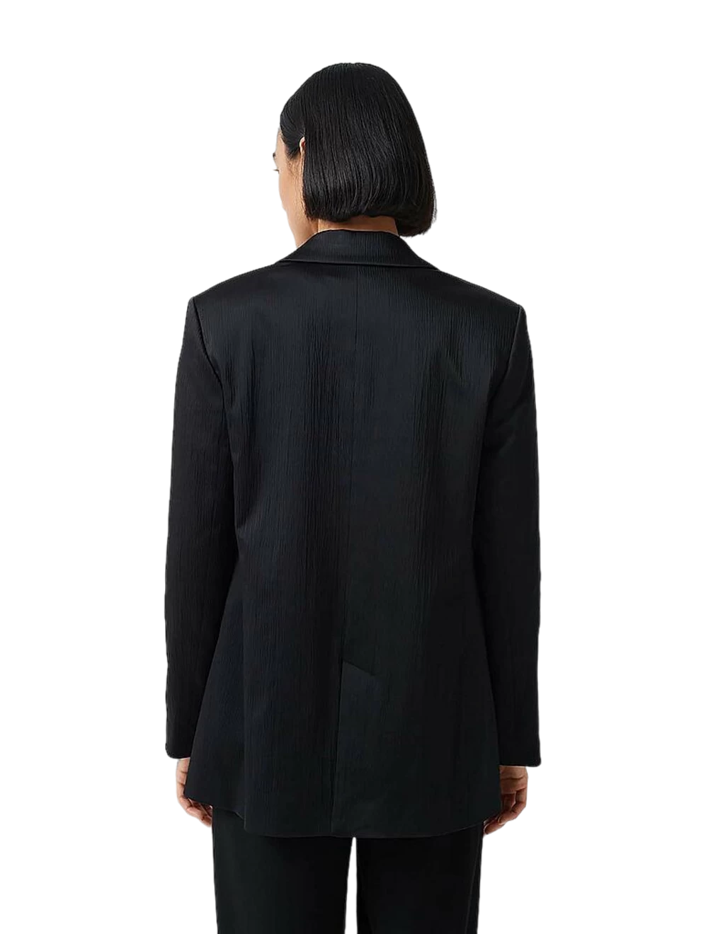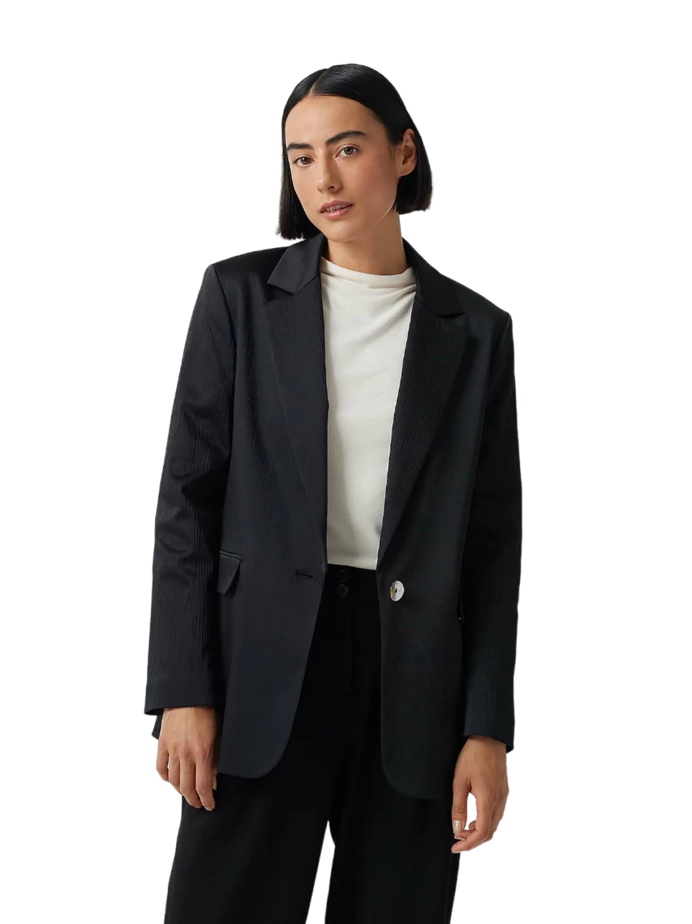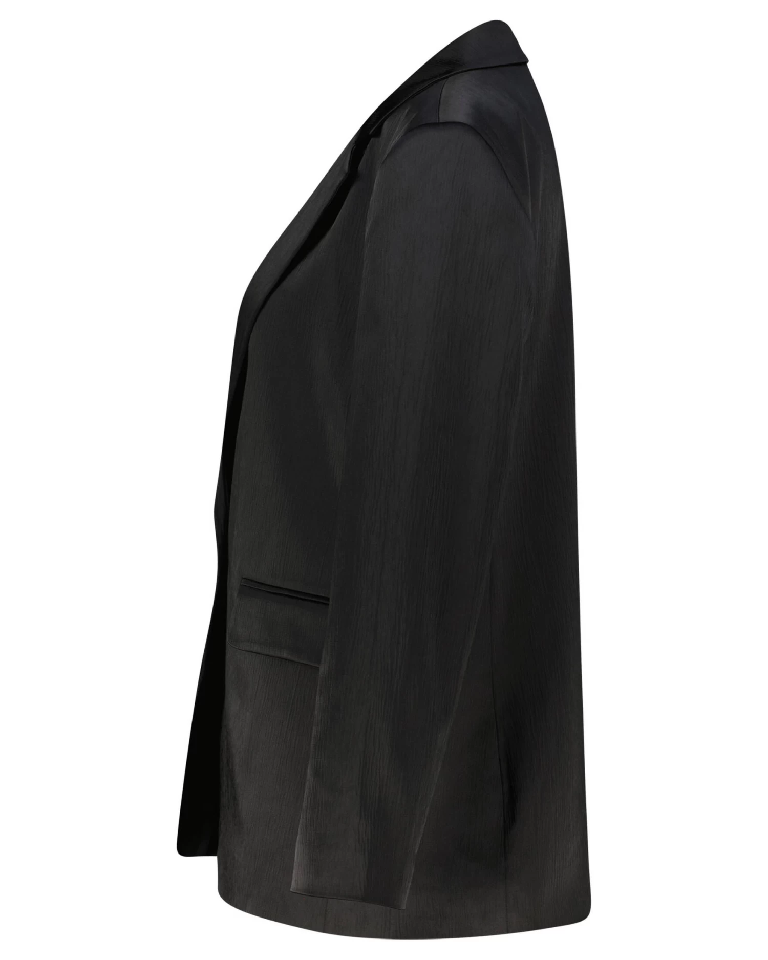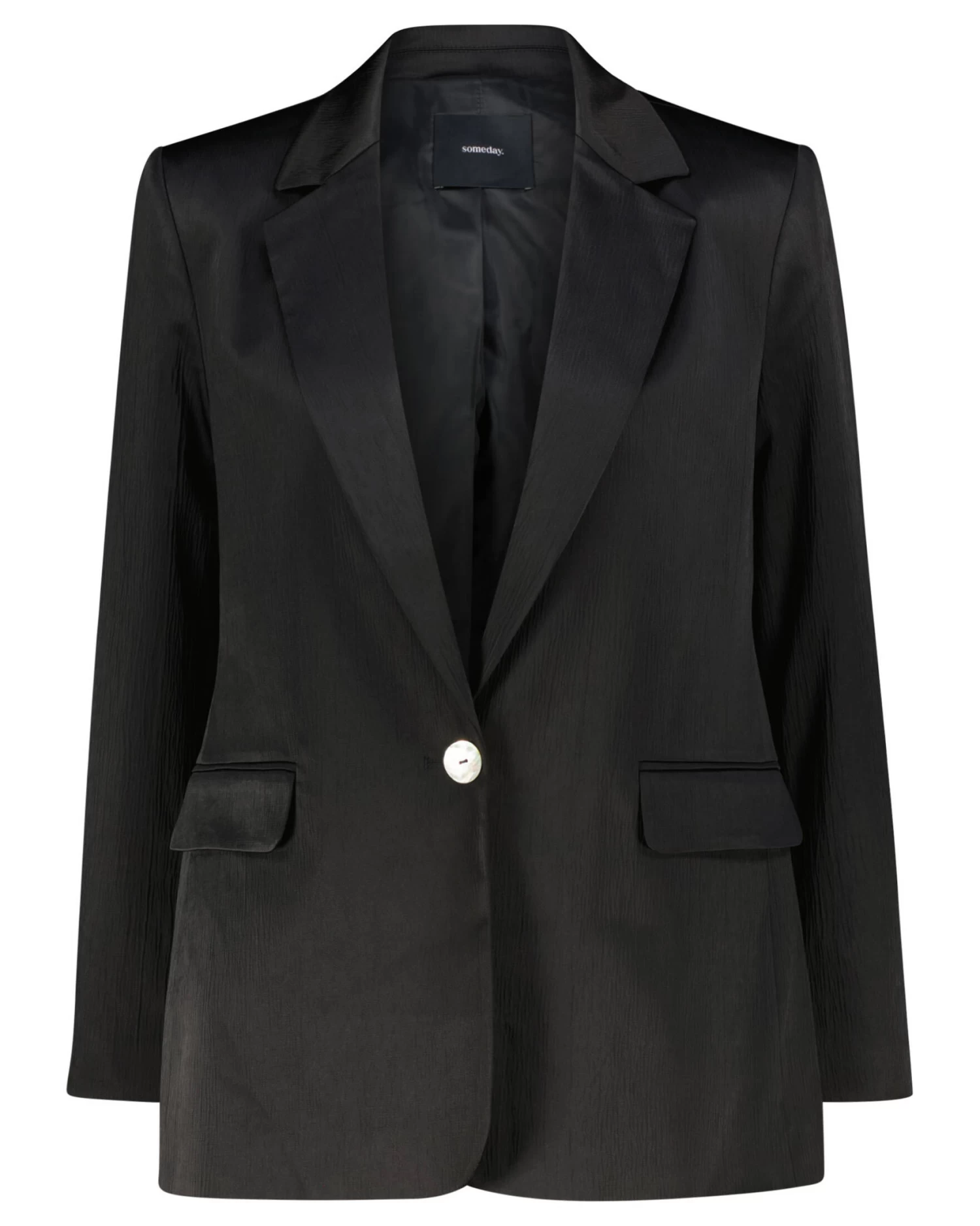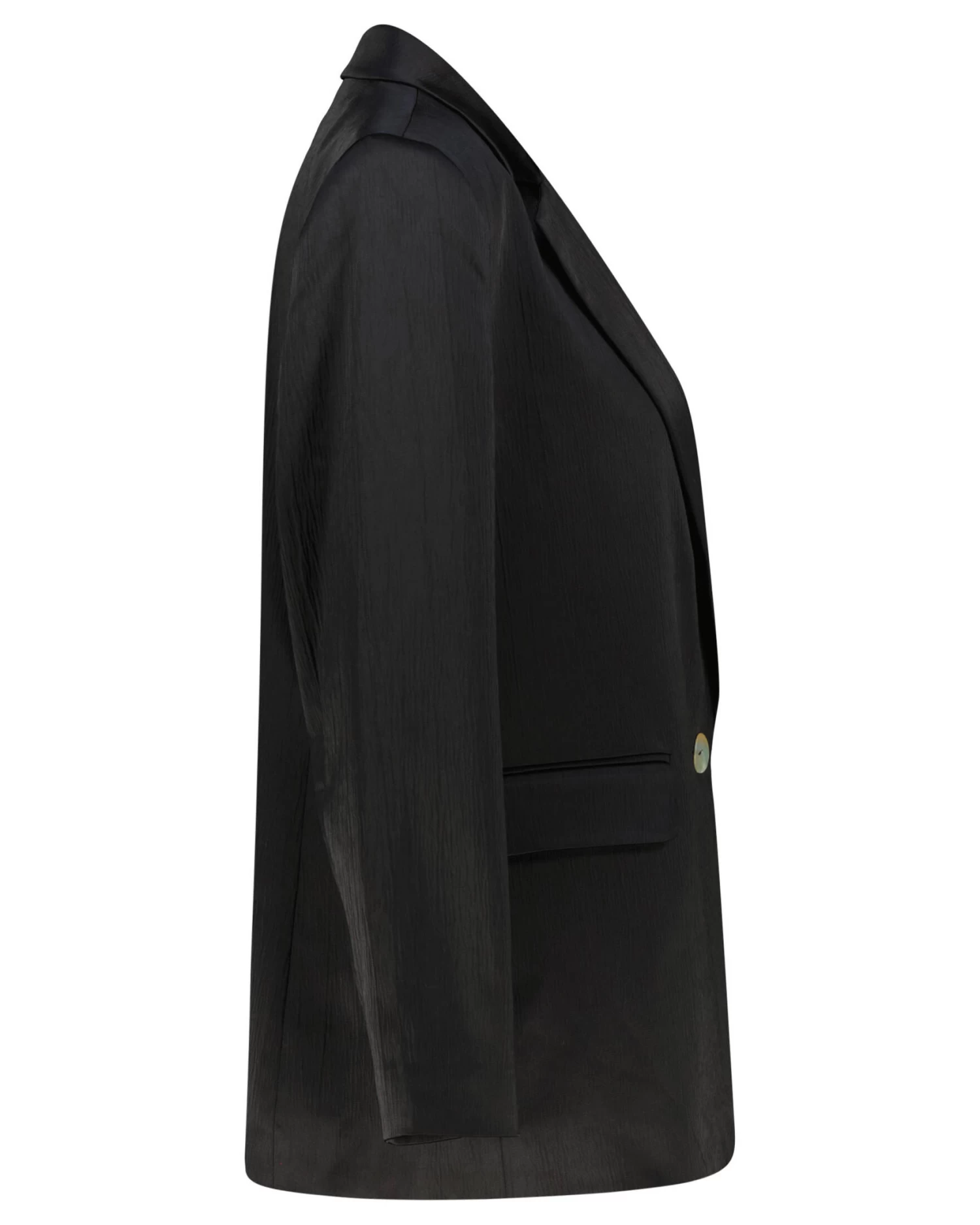 Der Blazer aus einem BCI Cotton Mix lebt von einer dynamischen Oberfläche in dezenter Plissee-Optik. Der Perlmuttknopf ist ein besonderes Highlight und wirkt wie ein edles Schmuckstück.