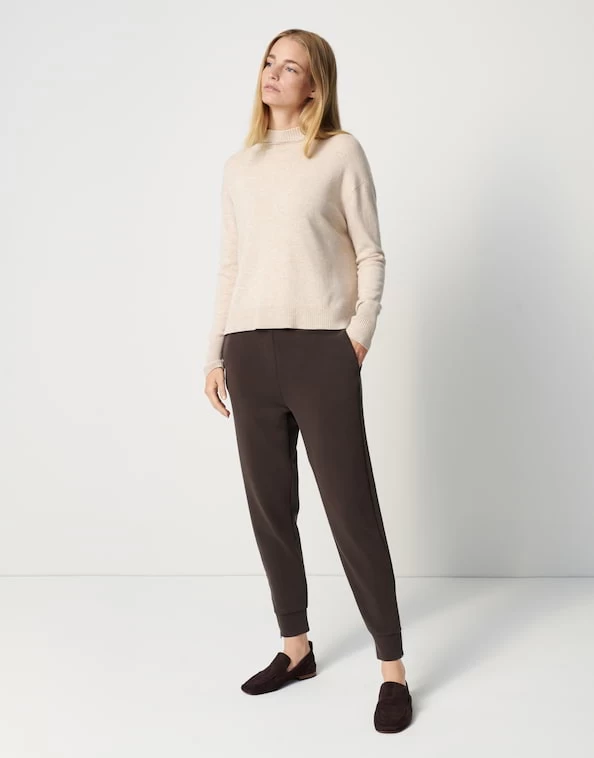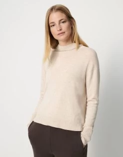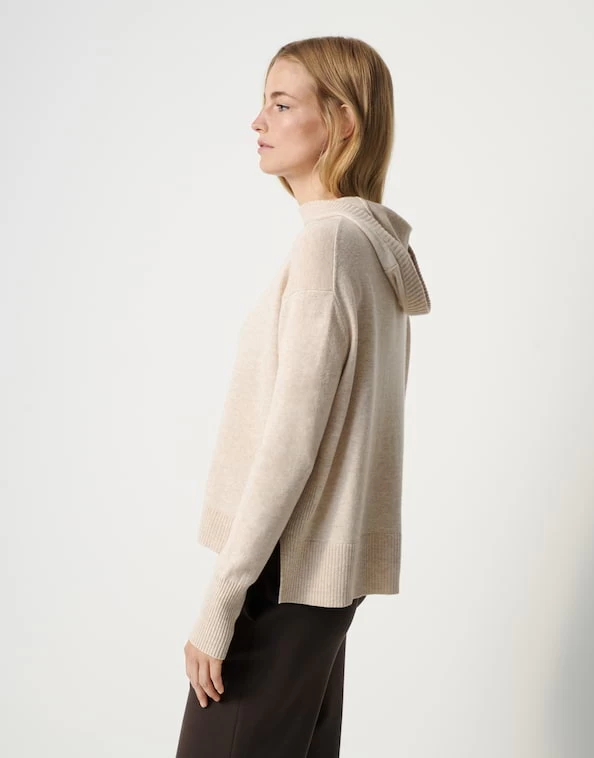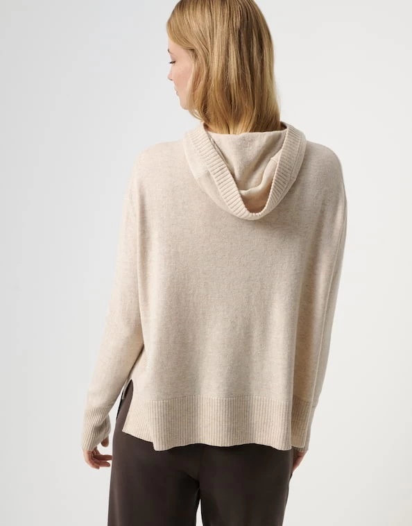 Der weiche Cashmere-Mix und der softe Griff verleihen dem Kapuzenpullover ein komfortables Tragegefühl. Der lockere Cut in Kombination mit der Kapuze ergänzt den legeren Stil. Rippbündchen und grobe Strickelemente in den Seiten unterbrechen die Feinstrick-Optik des Pullovers.