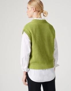 Der Pullunder aus einer weichen Cotton Strick Qualität, ist nicht nur praktisch, sondern auch ein absolutes Trend Item in dieser Saison. Neben der modischen Form und den weiten Armlöchern erhält der Style einen femininen Touch, durch den V-Ausschnitt.