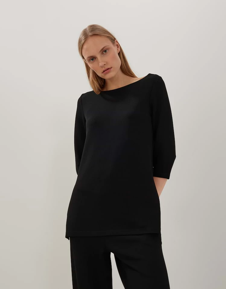 Das Sweatshirt aus einem hochwertigen Viskose-Mix besticht mit femininen Details. Die verlängerte A-Linie harmoniert besonders schön mit dem weiten U-Boot-Ausschnitt. Eine dynamische Waben-Struktur rundet den Look ab.