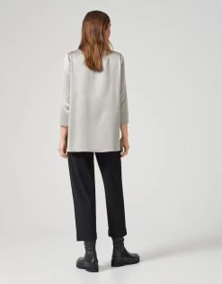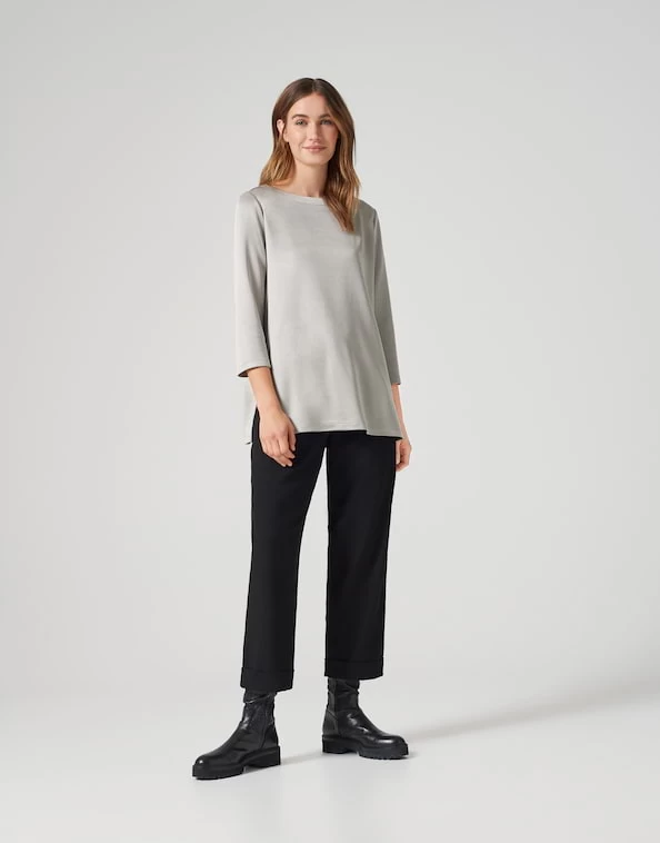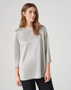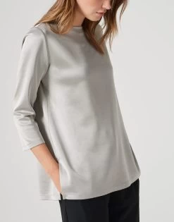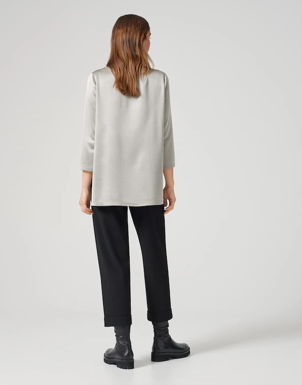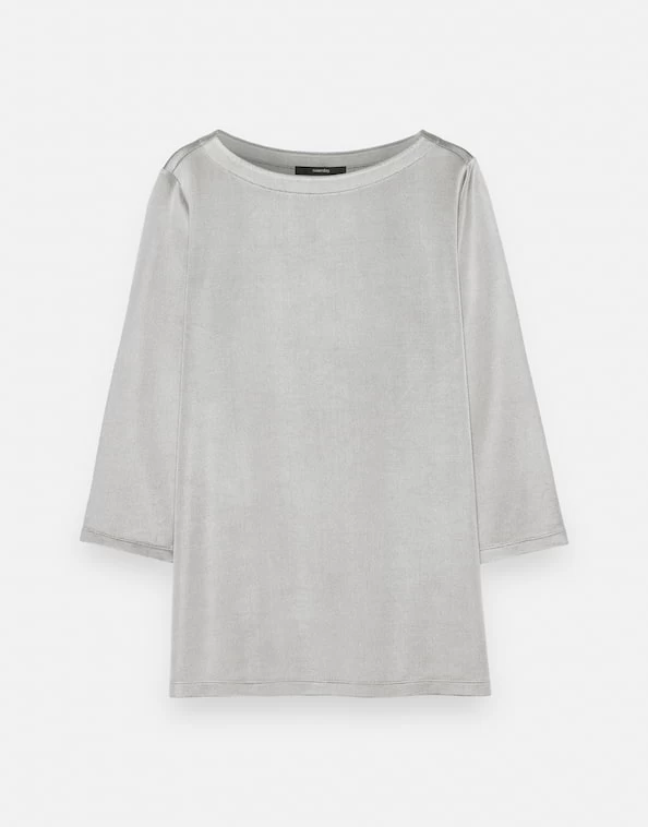 Das Sweatshirt aus einem extrem soften Material-Mix vereint Festiveness und Sportivität. Der verlängerte Fit sorgt für einen maximalen Komfort und wird um ¾-Ärmel ergänzt. Der Look des Sweatshirts ist schlicht gehalten und setzt einen Fokus auf die den schimmernde Oberfläche.