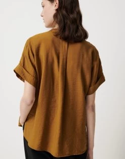 Viskose-Mix, V-Ausschnitt, gekrempelte Ärmel, Schlitze an den Seiten, luftiger Schnitt, das Model ist 178 cm groß und trägt Größe S