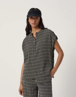 Die Shirtbluse aus einem ECOVERO™ Viskose Mix überzeugt mit einem gedruckten Ethno-Print. Die Oberfläche verfügt über einen seidigen Charakter.