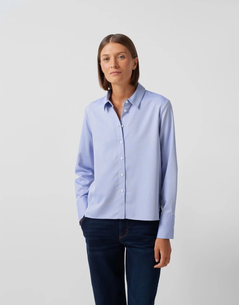 Die Bluse aus einem hochwertigen Viskose-Mix ist in einer schönen Two-Tone-Optik gefertigt. Die moderne Passform ist weit und kurz gehalten. Die besondere Ware verfügt über einen edlen Glanz, der wie ein Seiden-Finish wirkt.